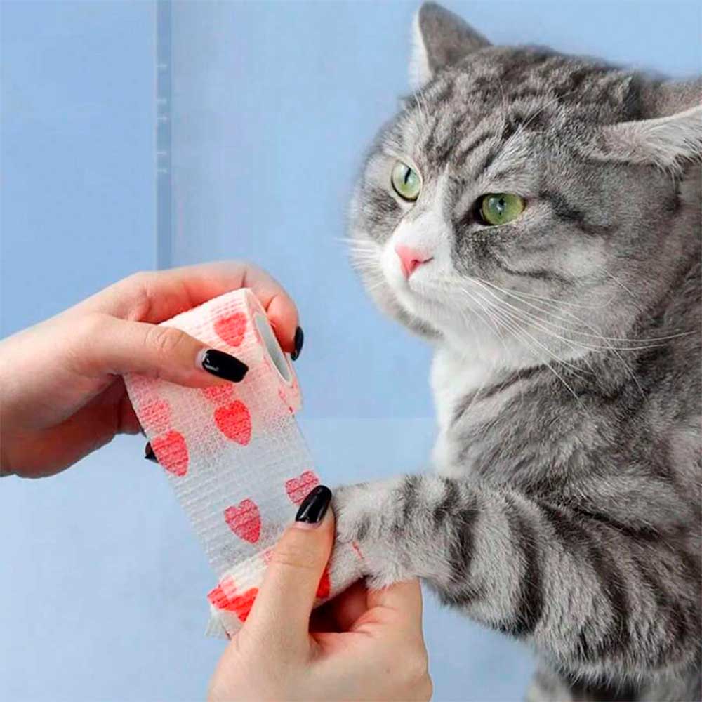 Cuidado com Carinho: Feita com material elástico de alta qualidade, nossa bandagem autoaderente envolve suavemente a área lesionada do seu pet, proporcionando suporte e proteção sem causar desconforto.