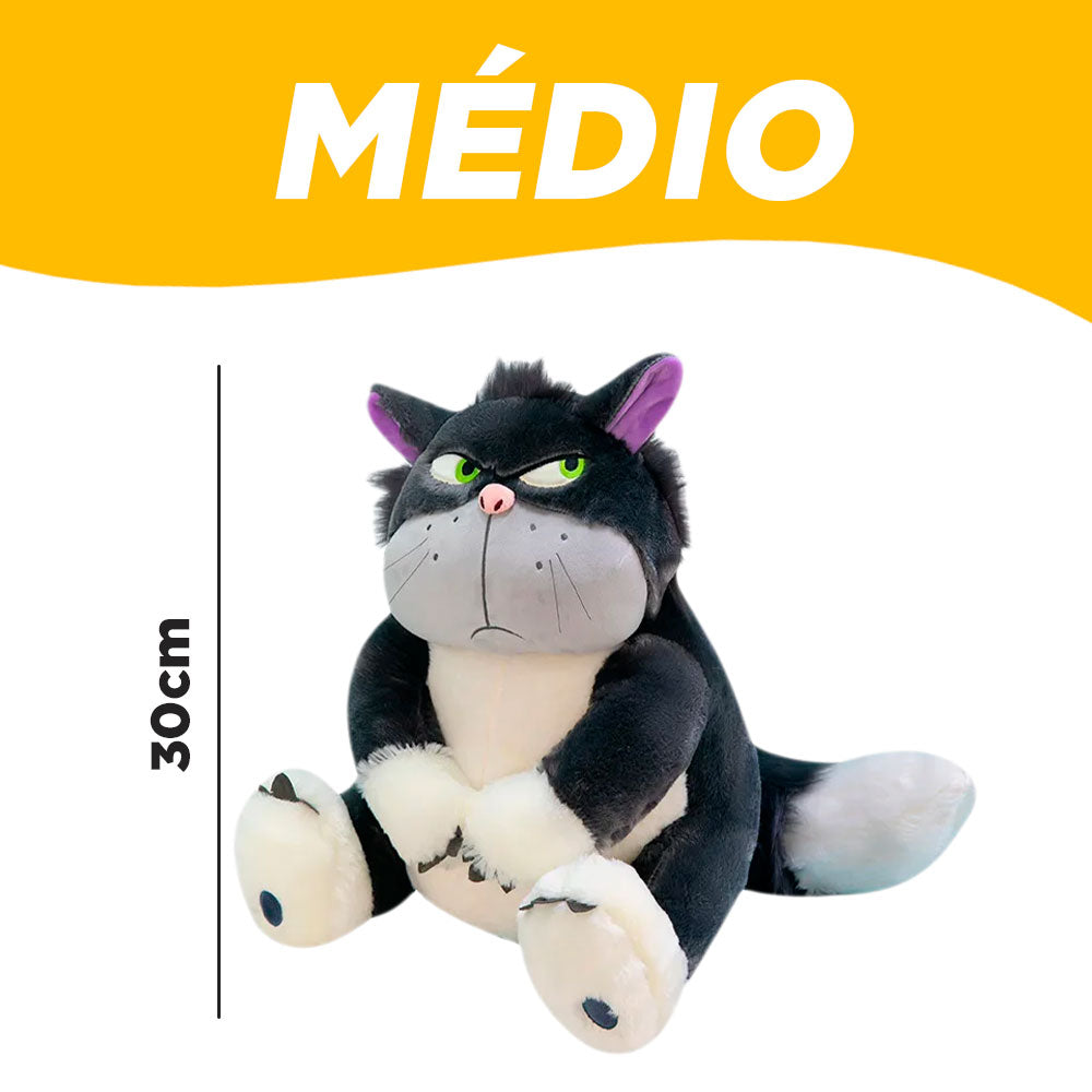 Inspirado no gato Lúcifer, personagem do filme Cinderela, essa pelúcia é confeccionada com material macio e acolhedor, ideal para trazer aconchego e tranquilidade ao seu cão. Com sua textura suave, ela é perfeita para abraçar e mastigar levemente.