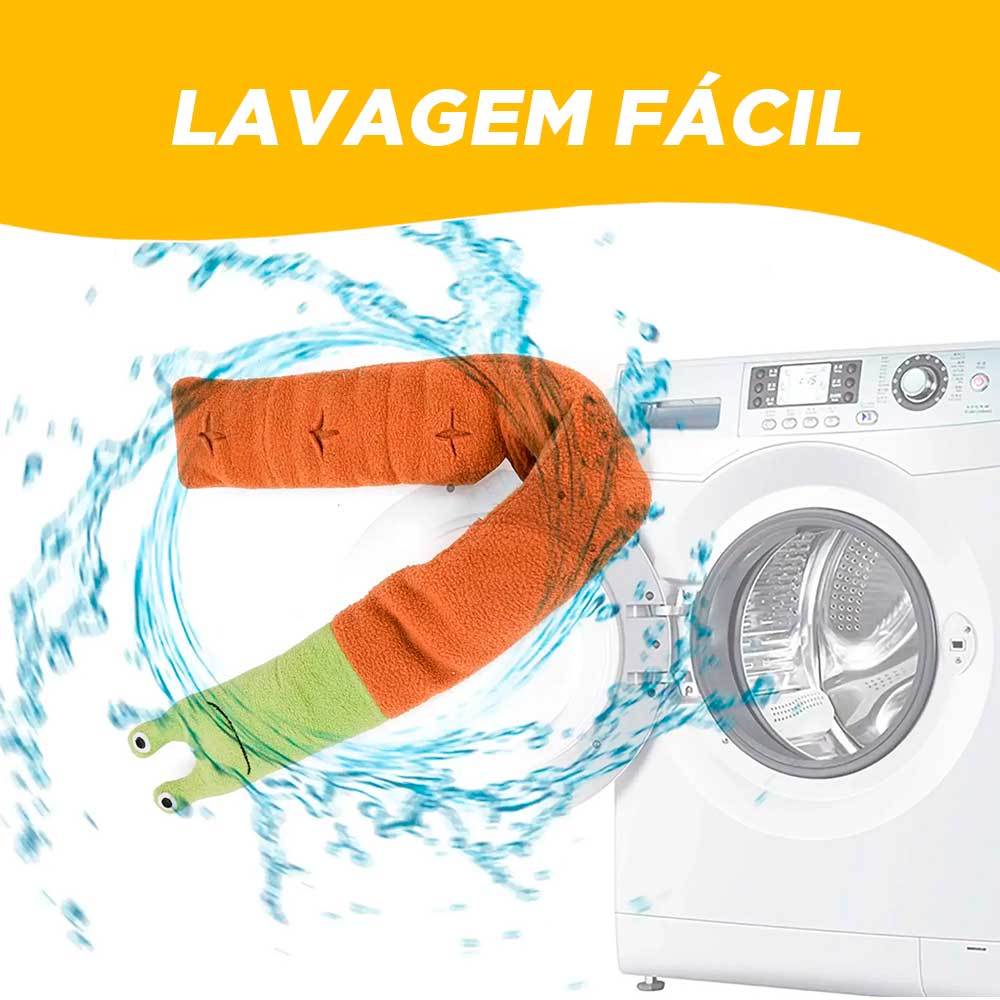 O caracol é revestido com material de flanela e é preenchido com algodão boneca, macio e texturizado, trazendo conforto e segurança durante as brincadeiras além de ser ideal para lavagem em máquina.