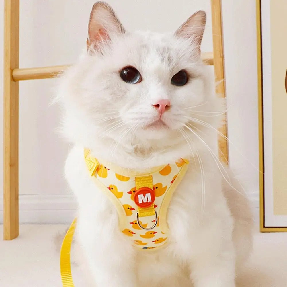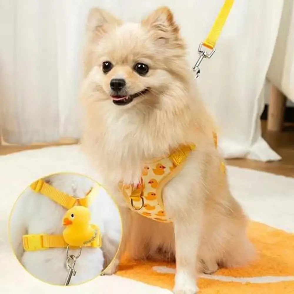 Seu pet já é uma fofura, mas com o nosso Conjunto Peitoral & Coleira "Pateta" ele vai se transformar no centro das atenções! Diga adeus aos passeios sem graça e olá à alegria contagiante desse design exclusivo de patinhos amarelos.