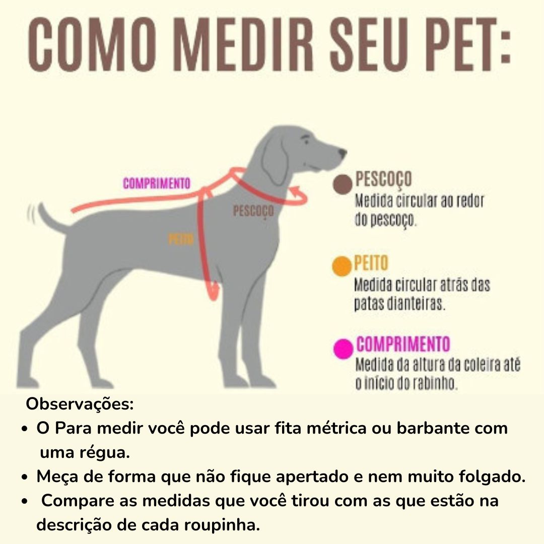 1. Por favor, verifique as medidas do seu animal de estimação para ter certeza de que as roupas cabem antes de fazer o pedido.