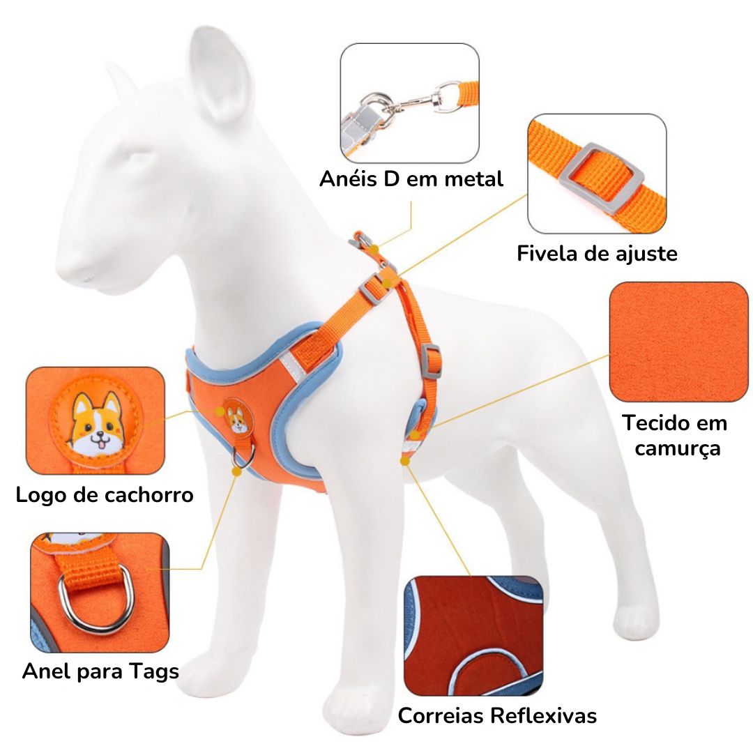 - Conforto e Ajuste Perfeito: O modelo tipo colete distribui melhor a pressão no peito do pet, evitando desconforto e garantindo maior liberdade de movimento.