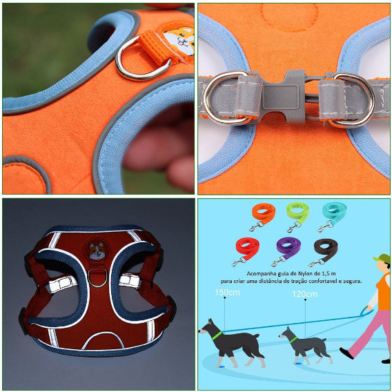 - 01 Coleira Do Tipo Colete Peitoral + 01 Guia