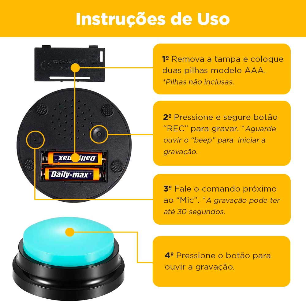 - Botão de Comunicação Pet com Gravação de Voz (pilhas não incluídas)