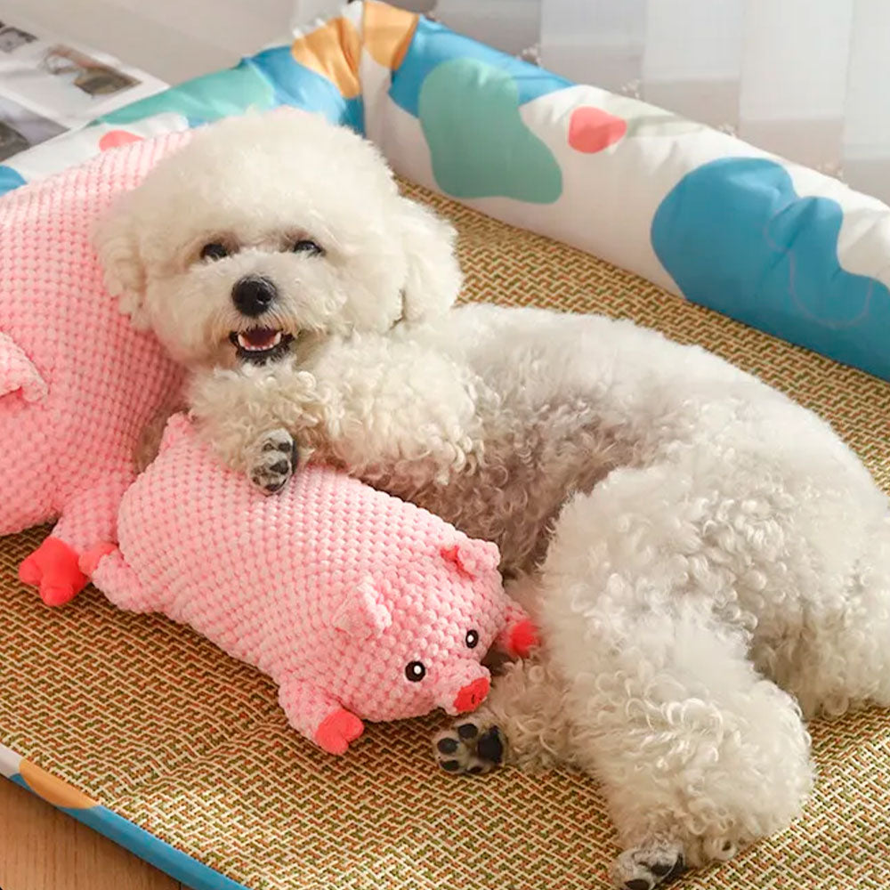 Feita com um tecido de alta qualidade, a Pelúcia Meu Amigo Porco possui uma textura abacaxi única que agrada ao toque e proporciona uma experiência sensorial incrível para o seu pet. Perfeita para morder, abraçar e se aconchegar, garantindo conforto e diversão em todos os momentos.